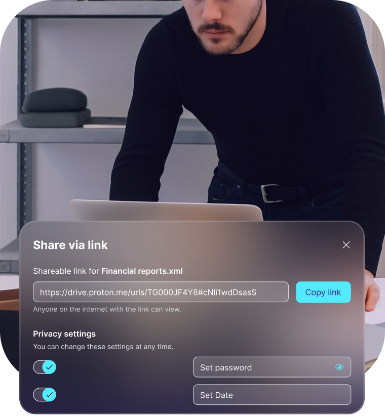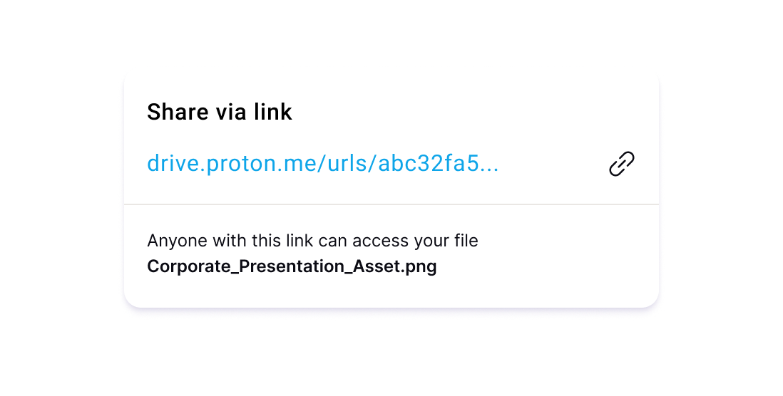 Proton Drive lets you securely share and receive files from those outside of your organization — even if they don’t have a Proton account.