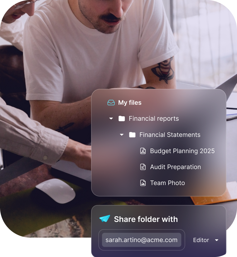 Share via email. Ensure only those your chosen recipients can access your files with secure invitations.