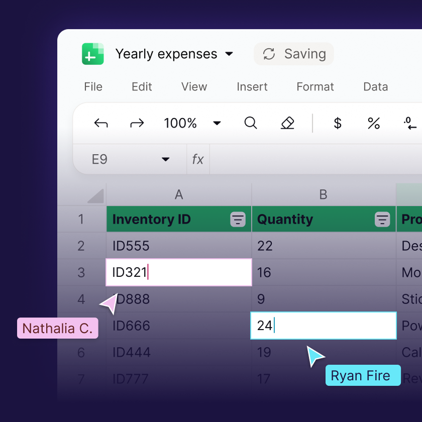 Work with clients and colleagues on the same worksheet at the same time. See updates as they happen, so everyone stays on the same page –– literally.