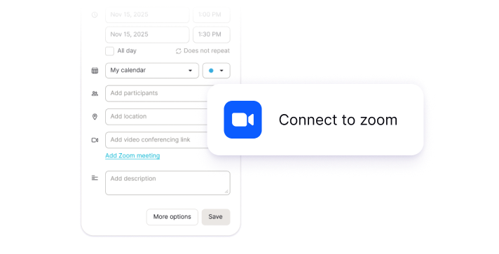 Streamline your workflows by adding Zoom links to events on Proton Calendar. And easily join meetings in Zoom, Teams, Slack, and more.