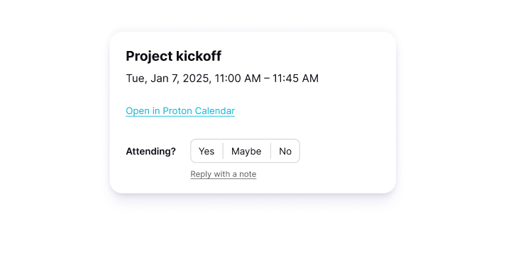 Download our mobile app (for iOS or Android) or desktop app (for MacOS, Windows, and Linux) for the full Proton Mail and Calendar experience.