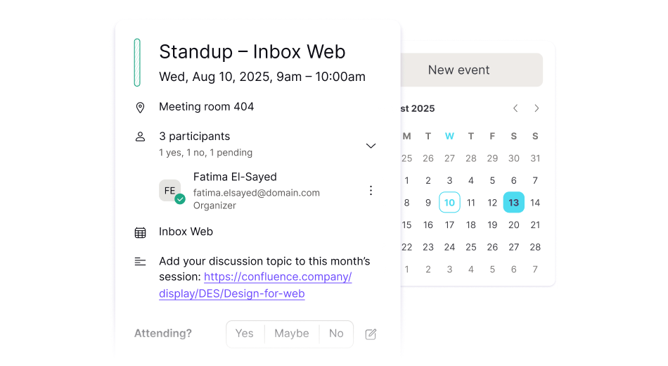 Protect your calendar data, including participants, locations, and contact info. Event invitations are end-to-end encrypted to prevent data breaches.