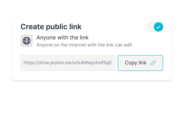 Invite internal and external collaborators to view and edit documents via email or secure sharing links, even if they don’t have a Proton Account.