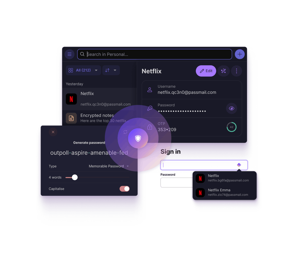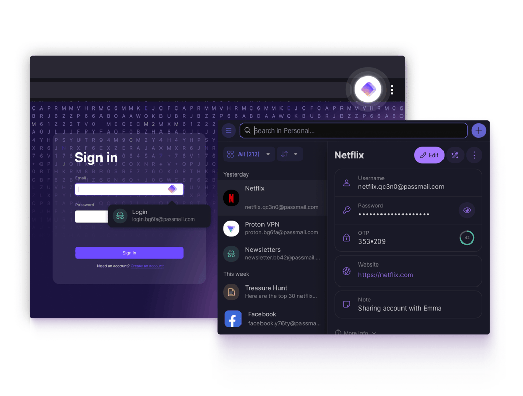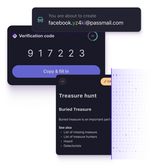 • Hide-my-email aliases prevent your email address from being exposed in a data breach or sold to spammers. Proton Pass Free comes with ten aliases.