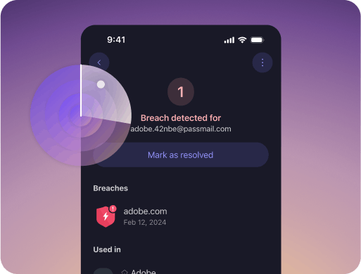 Receive immediate alerts if your personal information is compromised by a data leak. You can also add custom domains and external email addresses to be monitored.