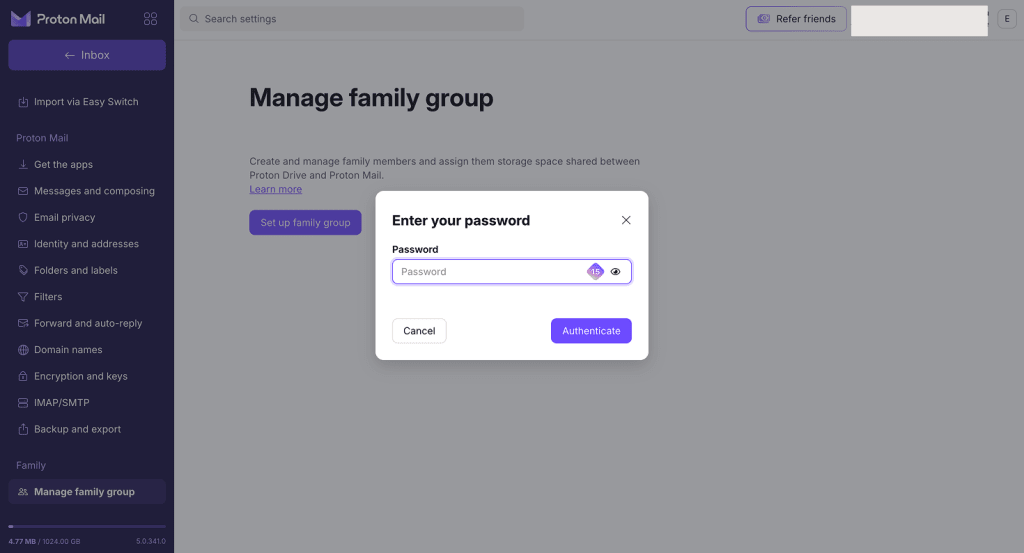 Proton Duo gives you 2 TB of storage space to share with your partner. When you add someone else to your plan, as the administrator of the plan, you’ll be prompted to allocate storage space. If your needs change, you can then adjust how much storage each of you has at any time.