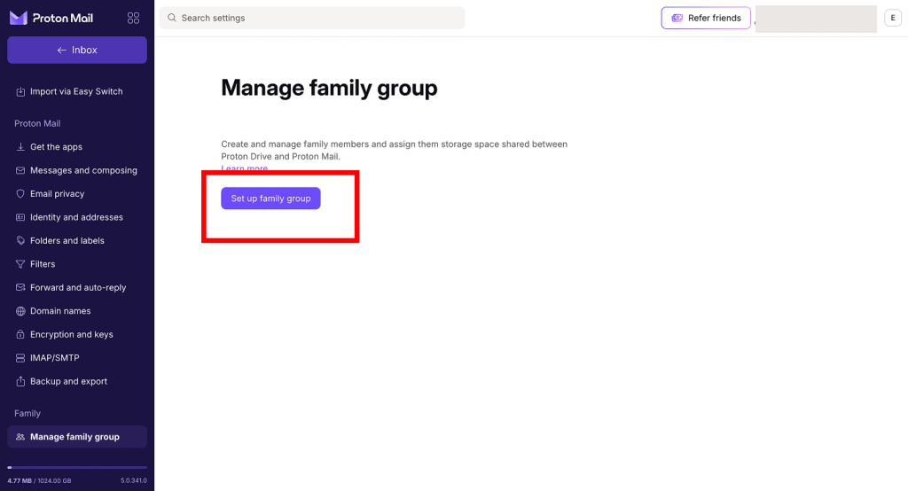 1. Open your account settings. In the sidebar, scroll to Family and select Manage family group and click Set up family group.